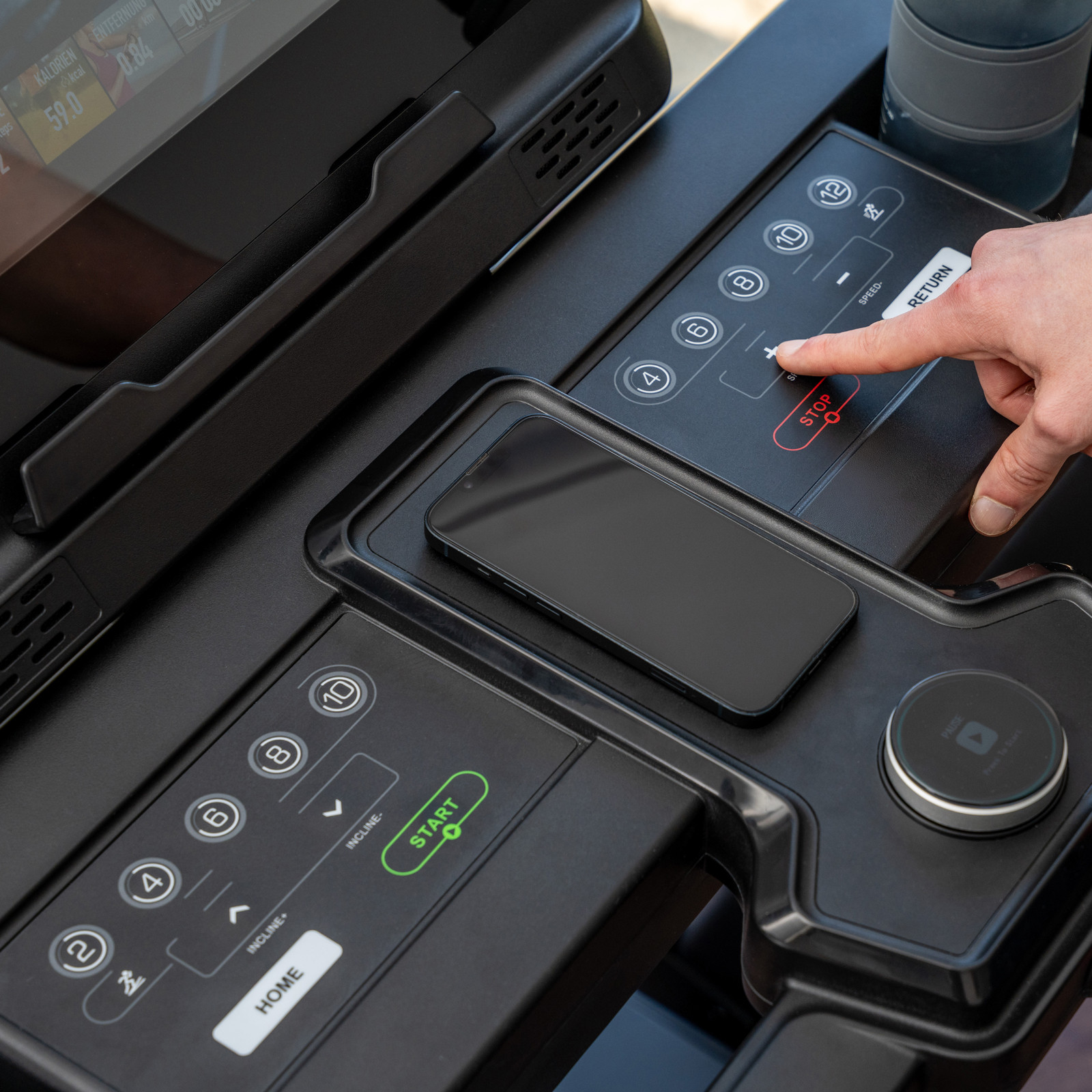 Another highlight is the integrated wireless charger that allows you to conveniently power your smartphone while you exercise. Additionally, the Track 600 can measure your heart rate either with the contact sensors built into the handles or, for more precision, by wearing a telemetric chest strap (sold separately).