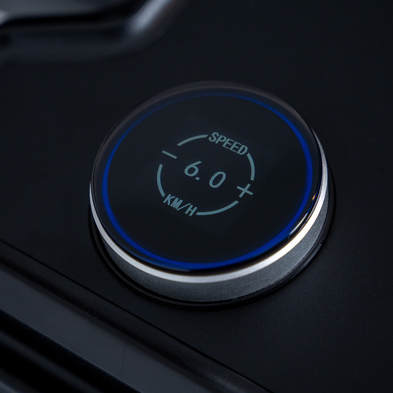 The controls for the intensity of your workout are especially flexible: 5 quick-select buttons for speed and incline, the touchscreen and the practical rotary button let you directly adjust the settings at any time. Pressing the rotary button switches between speed and incline so you can make fine adjustments or crank things up.